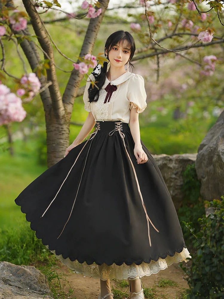 Black and White Old School Lolita Fashion Dress Bowknot Lolita JSK Set