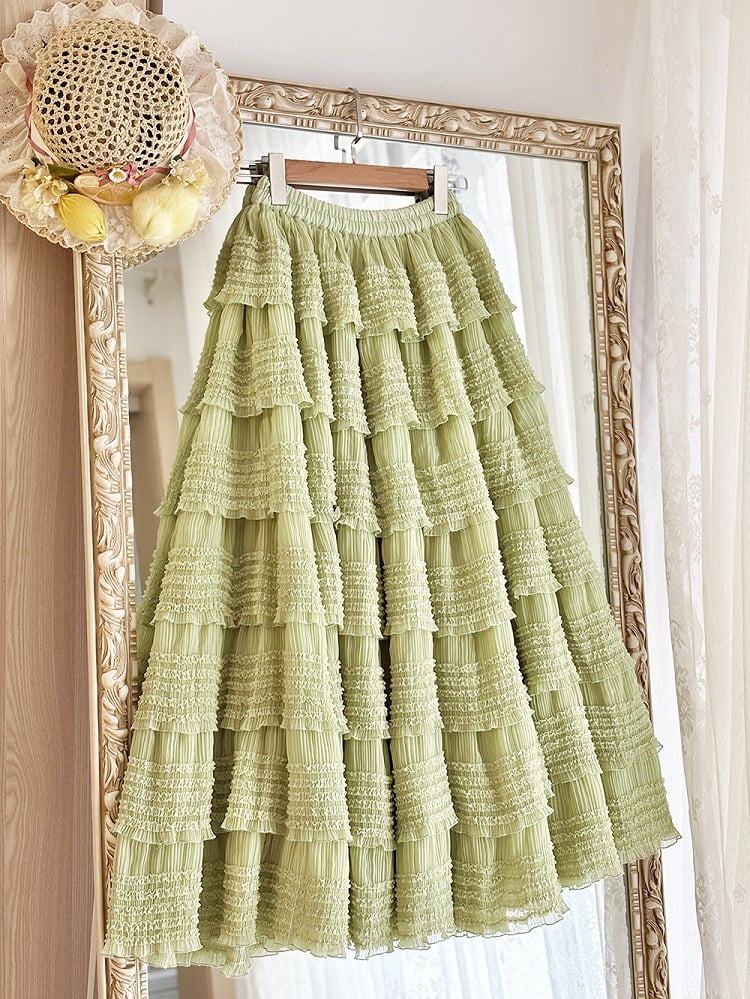 Tea Tiered Green Detail Length Skirt Under Ruffles