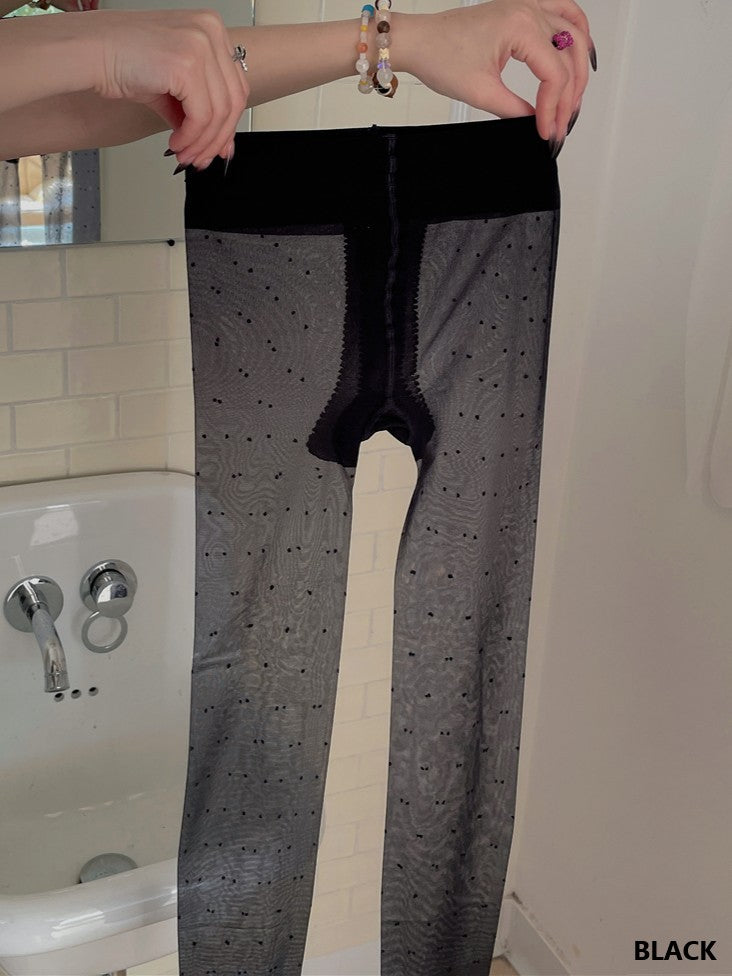Black/Black Tea/White Polka-Dot Pattern Tights