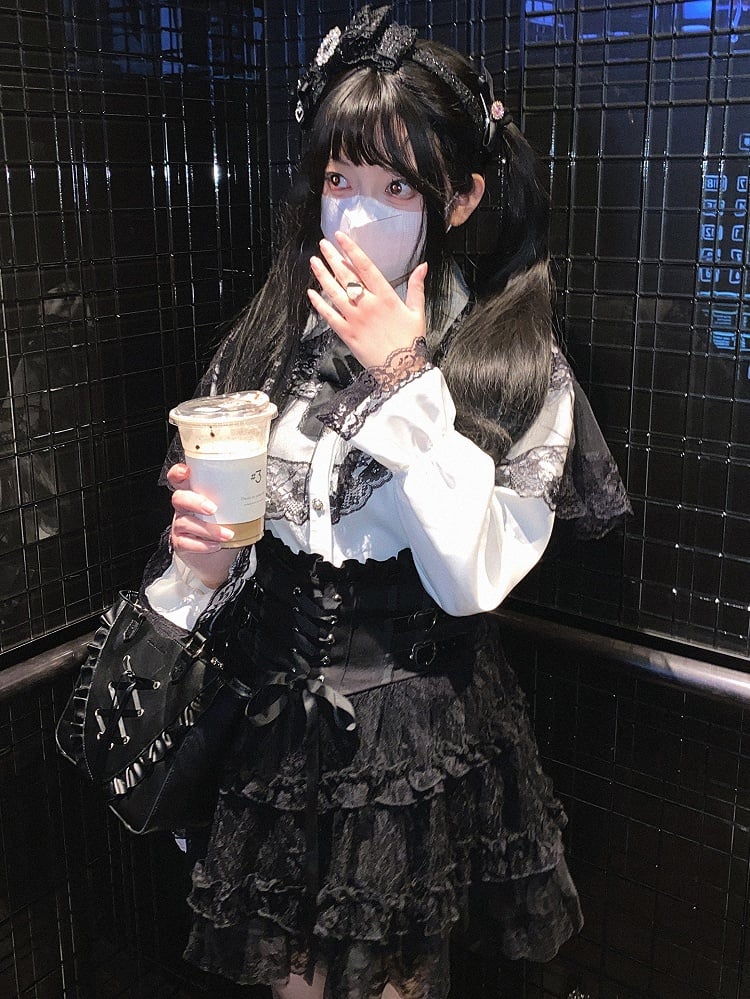 Jirai Kei High Waist Tiered Lace Skirt | Heart Buckles & Lace-Up Detail | 5 Colors