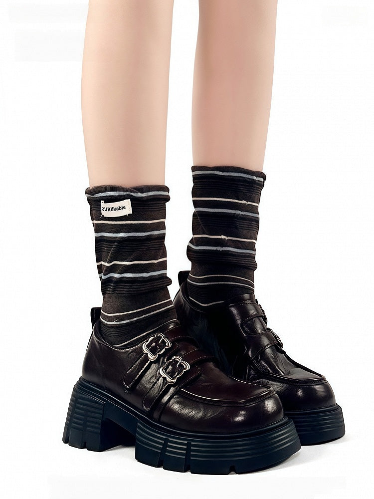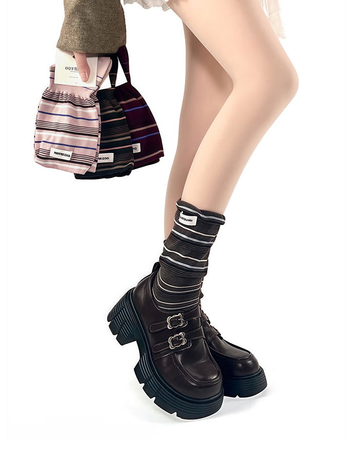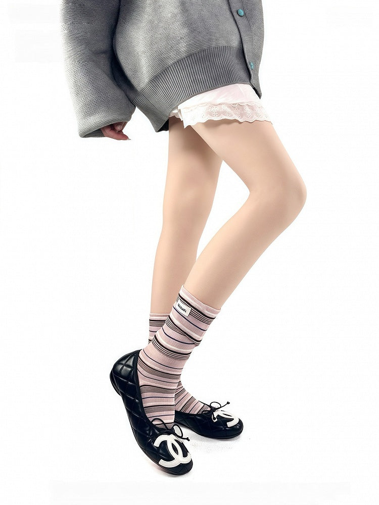 5 Colors Retro Striped Pattern Seamless Toe Cotton Socks with Patch Decoration