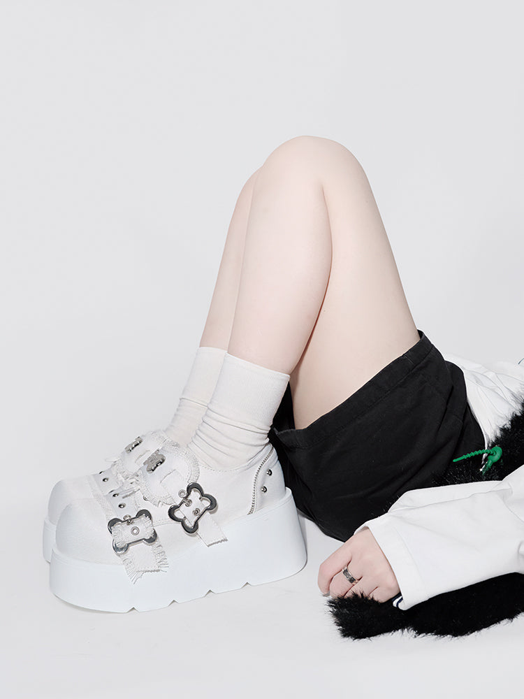 Toe Denim Shoes Puppy Platform Angel Punk Style Round