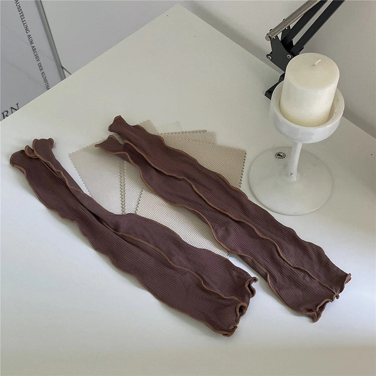 Ultra-Thin Leg Warmers Gray/Creamy White/Black Knitted Striped 35CM Vertical