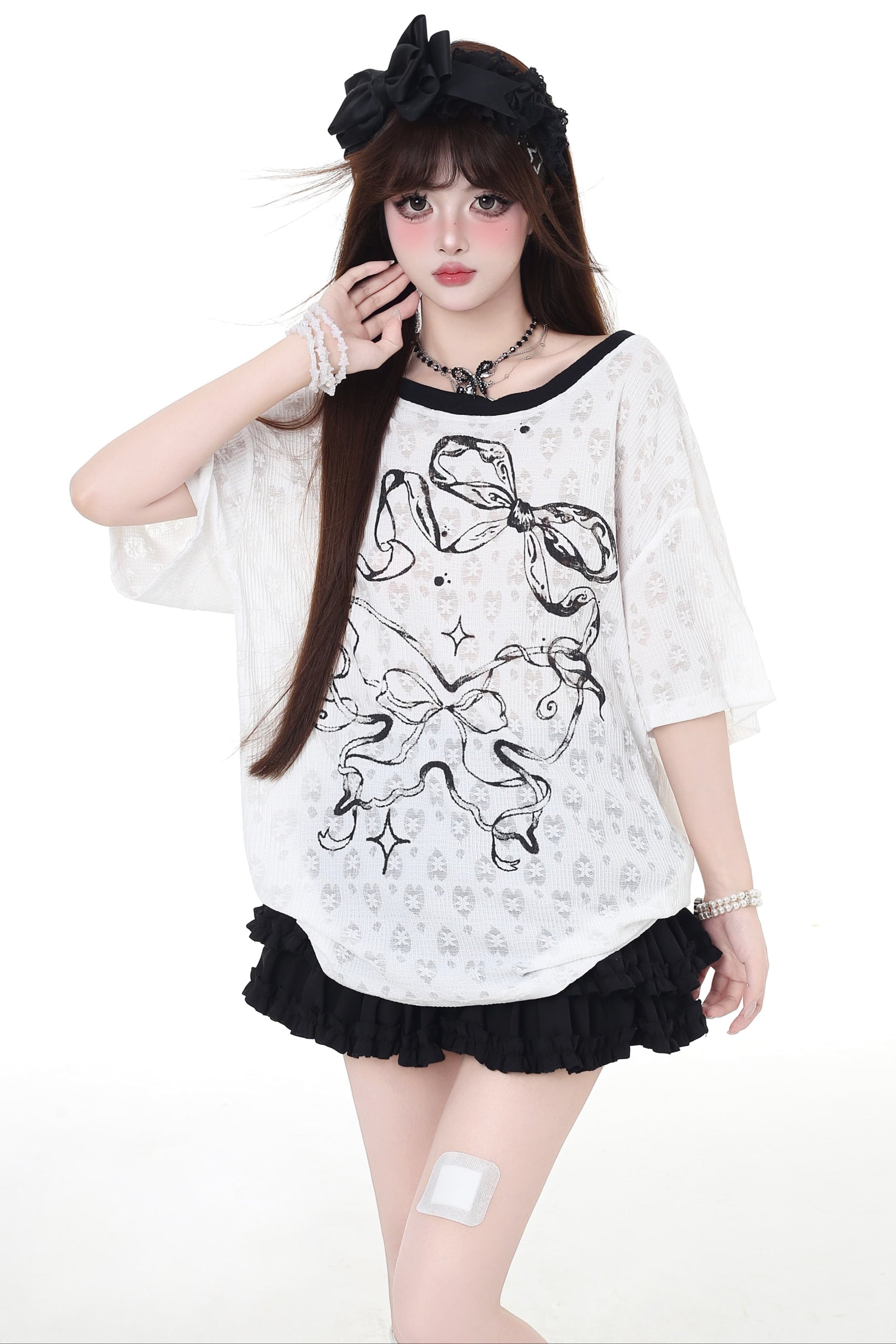 White and Pink Lolita Bonnet Choker