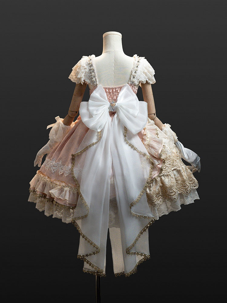 Pink and White Old School Lolita Fashion Dress Bowknot Detais Lolita JSK Set