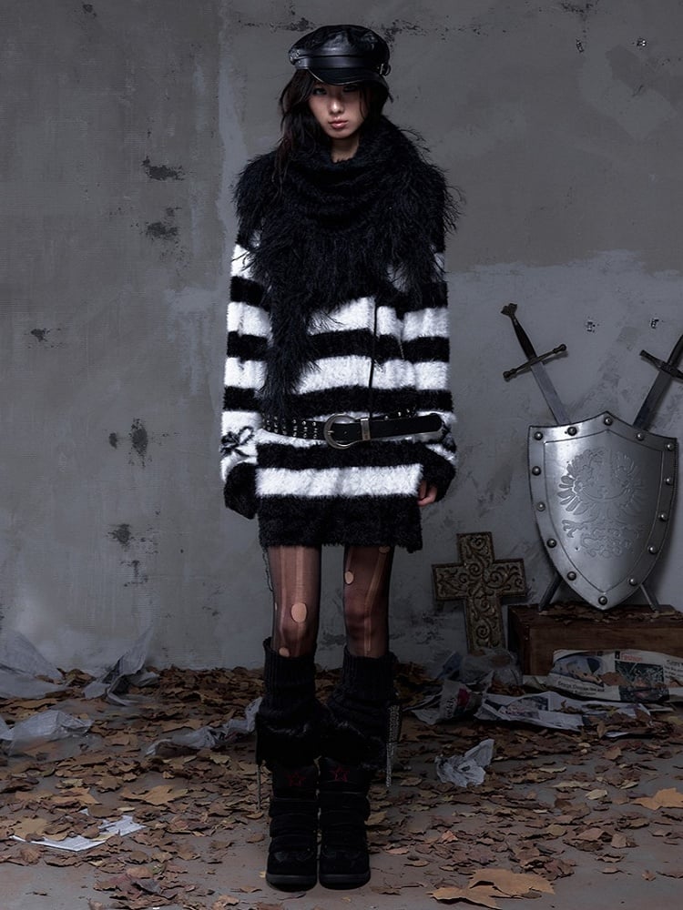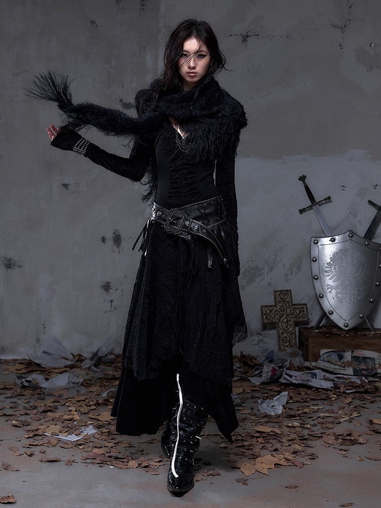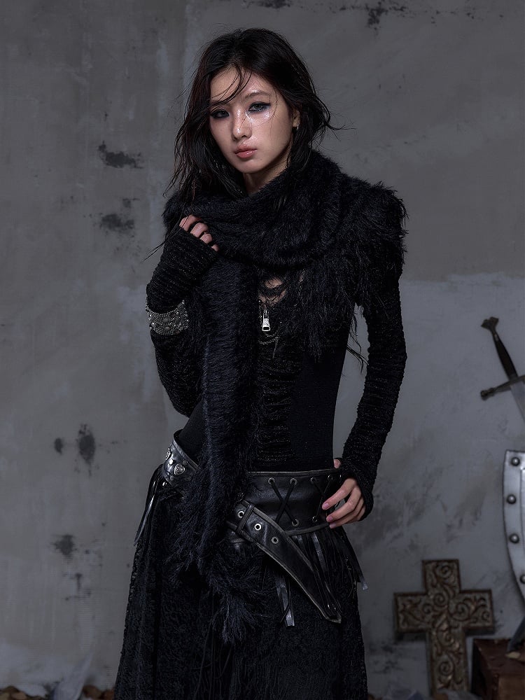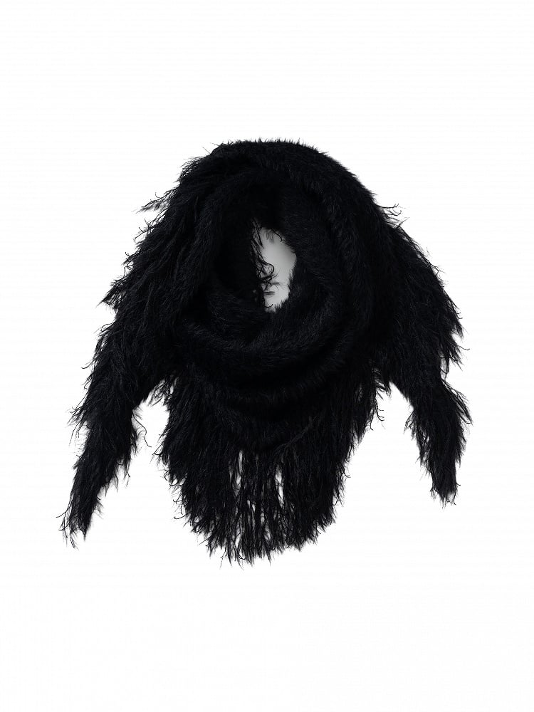 Vintage Y2K Black Punk Faux Mink Triangle Scarf with Long Fringe