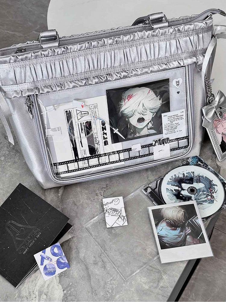 Trim Ita Bag Silver Ribbon Bow Large Capacity Tote Ruffled