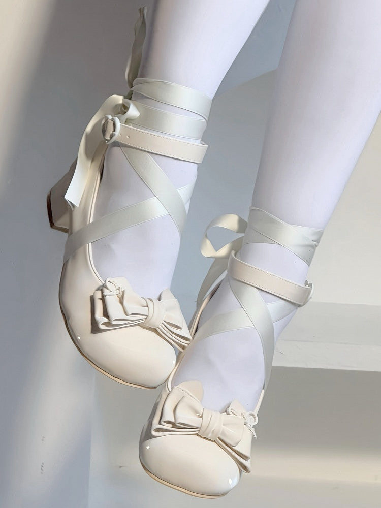 ● Bow at Top / Buckle Ankle Strap / Lace-up at Ankle / Rubber Sole
