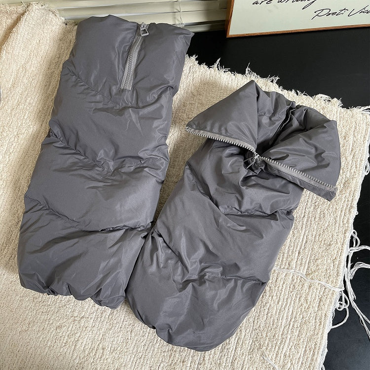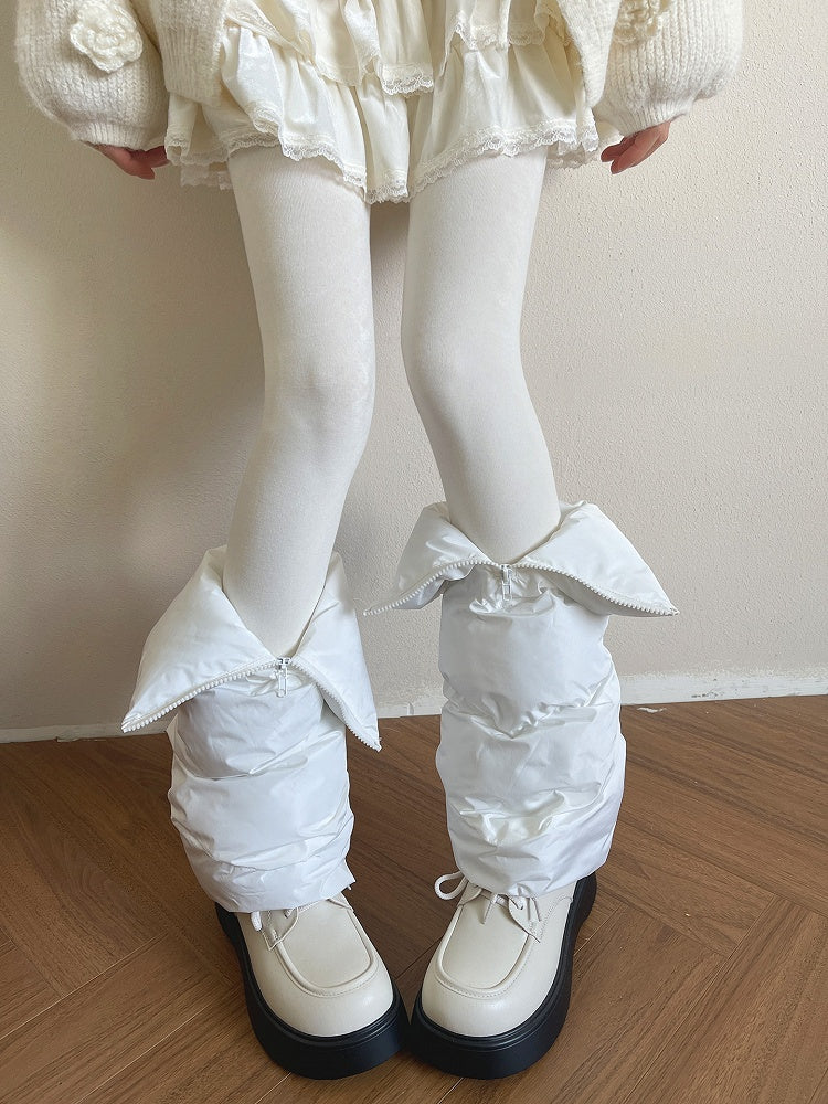 White/Gray/Black Large Turn-Down Collar Zipper-Designed Puffer Leg Warmers