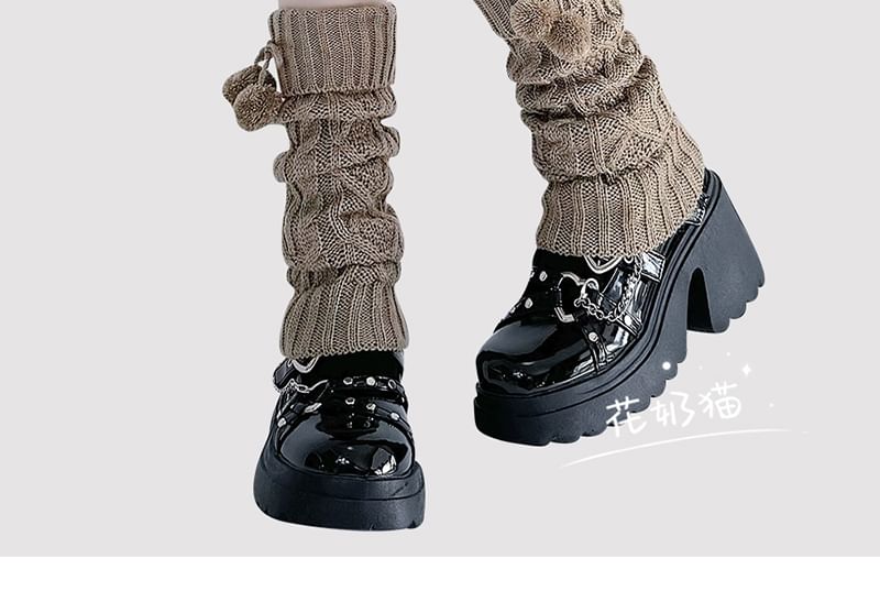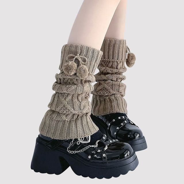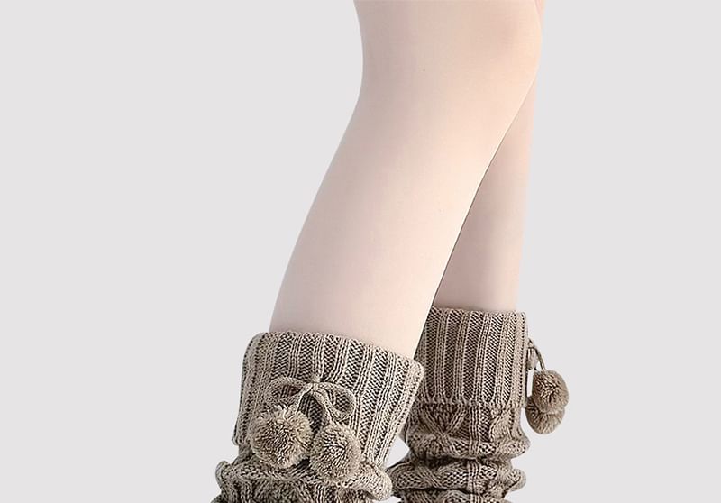 Ultra-Thin Leg Warmers Gray/Creamy White/Black Knitted Striped 35CM Vertical