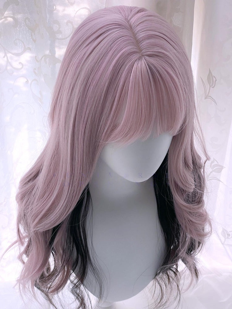 Black & Pink Highlight 65CM Wavy Wig with Air Bangs