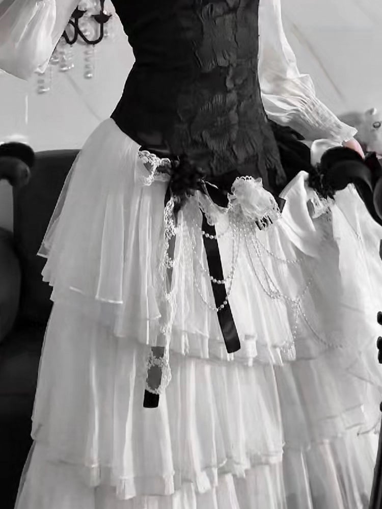 White and Chain Accessory Black Bead Bowknots Flowers