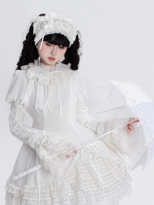 Black and White Old School Lolita Fashion Dress Bowknot Lolita JSK Set