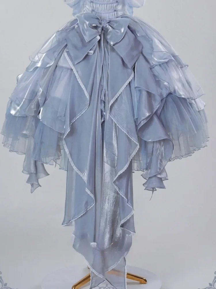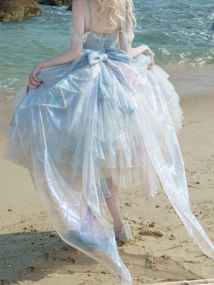 Blue and White Old School Lolita Fashion Dress Bowknot Detais JSK Set