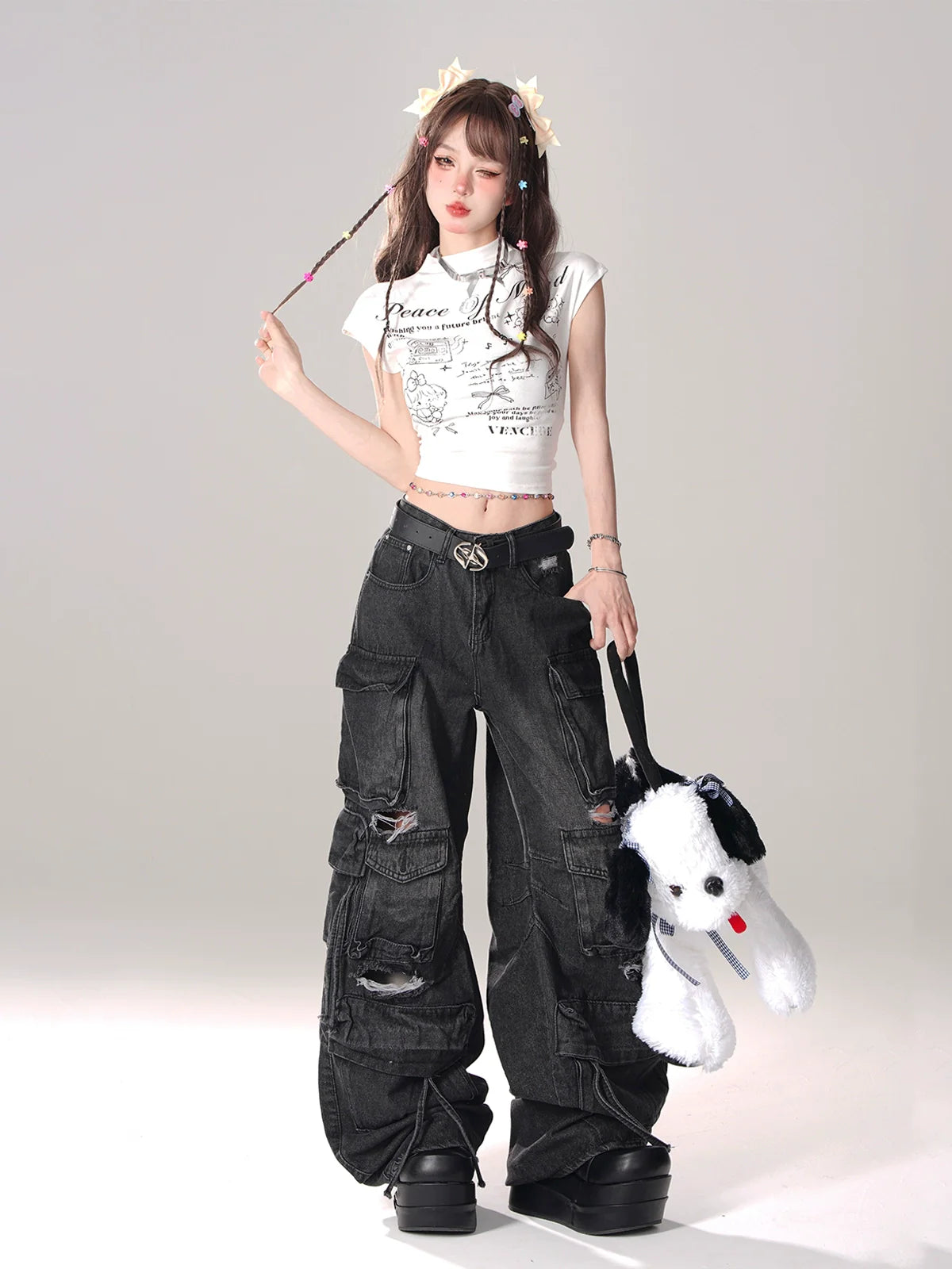 This White Cropped Ribbon T-Shirt features a cute and playful design with a pink pure backdrop. Perfect for adding a touch of sweetness to any outfit.