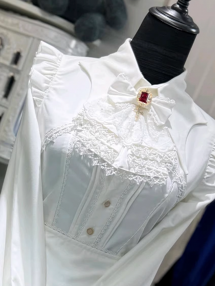 White Cross Rhinestone with Charm Tie Gothic Bow Jabot Blood-Red