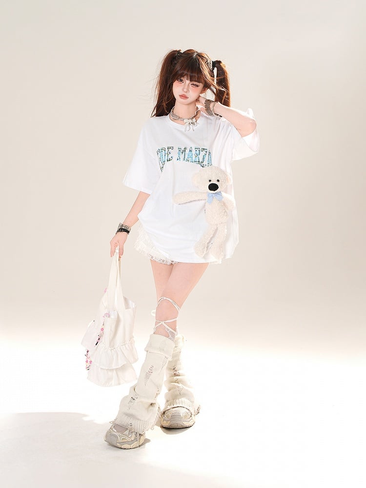 White Elastic Waist Lace Trim Mini Tiered Pleated Skirt and Gray