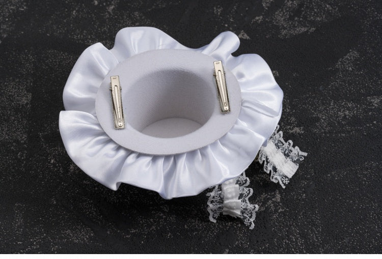 White Gothic Cross Lace Bow Ruffle Hem Hat Hairclip