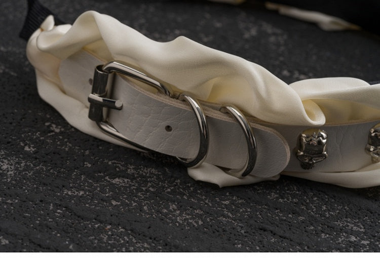 White Gothic Skeleton Studs Buckle Ruffled KC