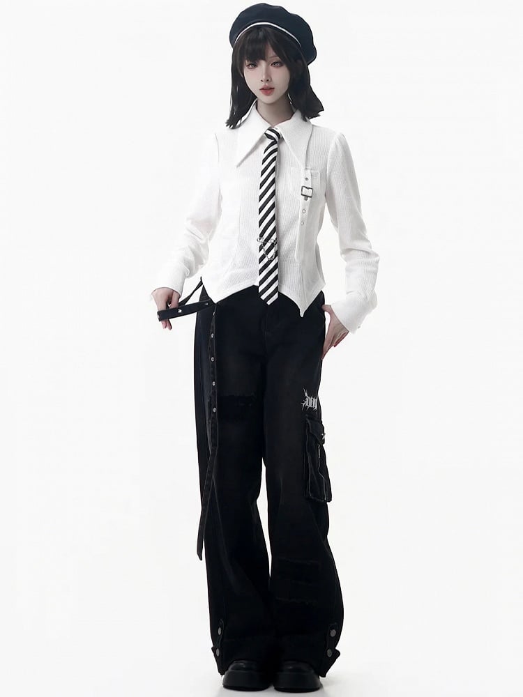 White Pointed and Shirt with Hem Collar Slim-Fit