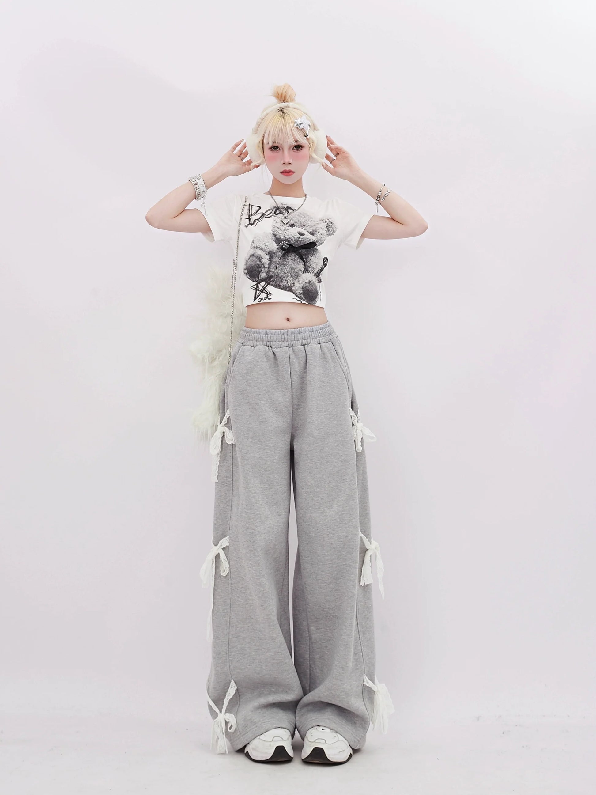 These White Ribbon Sweatpants Little are simply adorable. With a lovely white ribbon accent, they add a touch of charm to any outfit. Made from comfortable sweatpant material, they are perfect for playtime or lounging around. Stay cozy and stylish with these cute sweatpants.