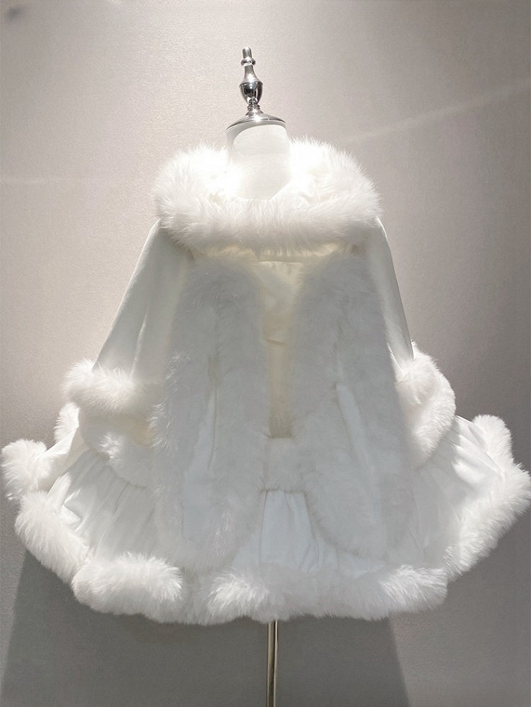White Sweet Winter Lolita Hooded Cape with Oversized Plush Bunny Ears