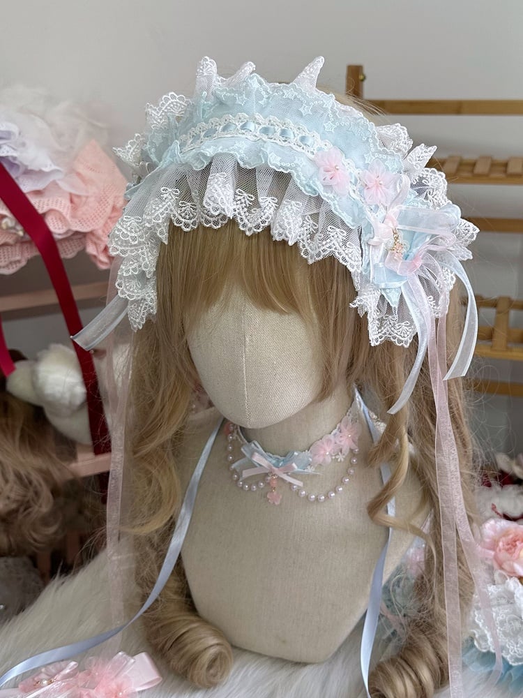 Pink & Blue Sweet Lolita Ruffled Hairband with Cherry Blossom Decorations