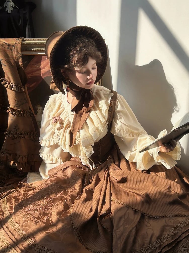 with Blouse Sleeves Long Ruffled Yellow Lace-Up Light Front