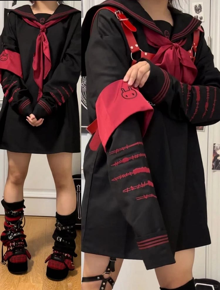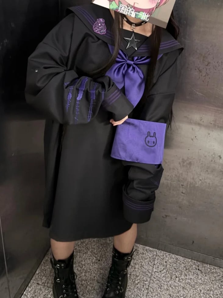 Landmine Style Sailor Collar Long Sleeve Top with Bunny & Scar Embroidery in 4 Colors