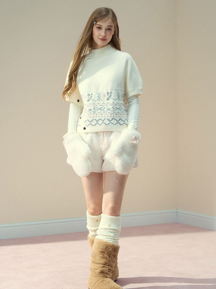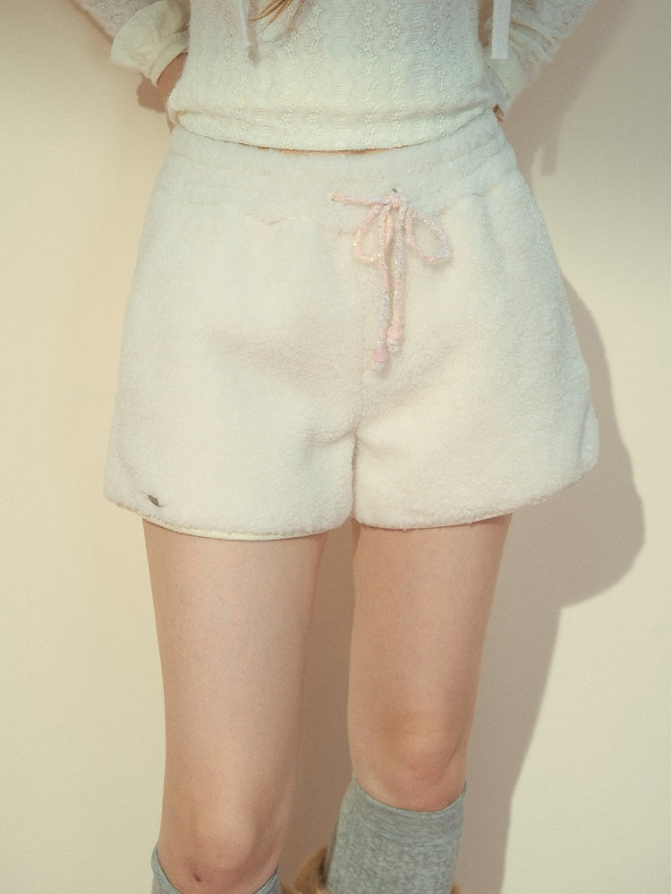 Cream White Shorts with Faux Fur & Drawstring Waist