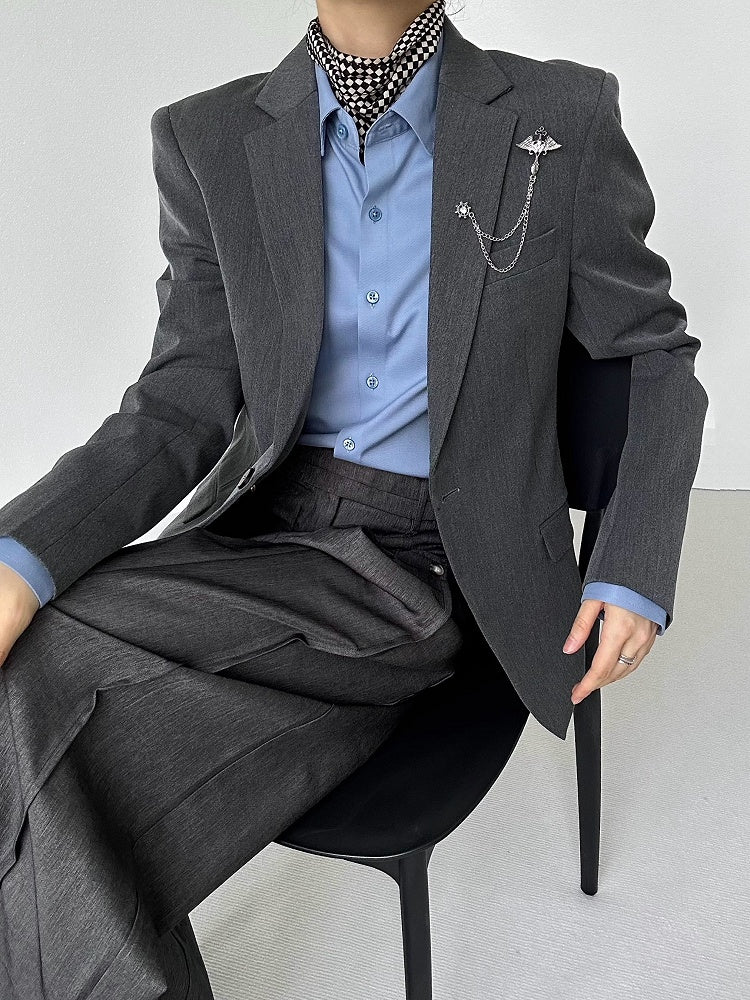 Ouji Lolita Gray Unisex Blazer with Shoulder Pads & Back Slit