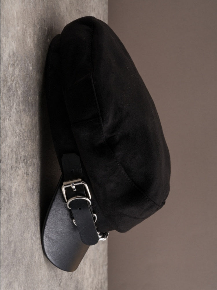Black Gothic Star Charm Heart Buckle Design Beret Hat With Chain