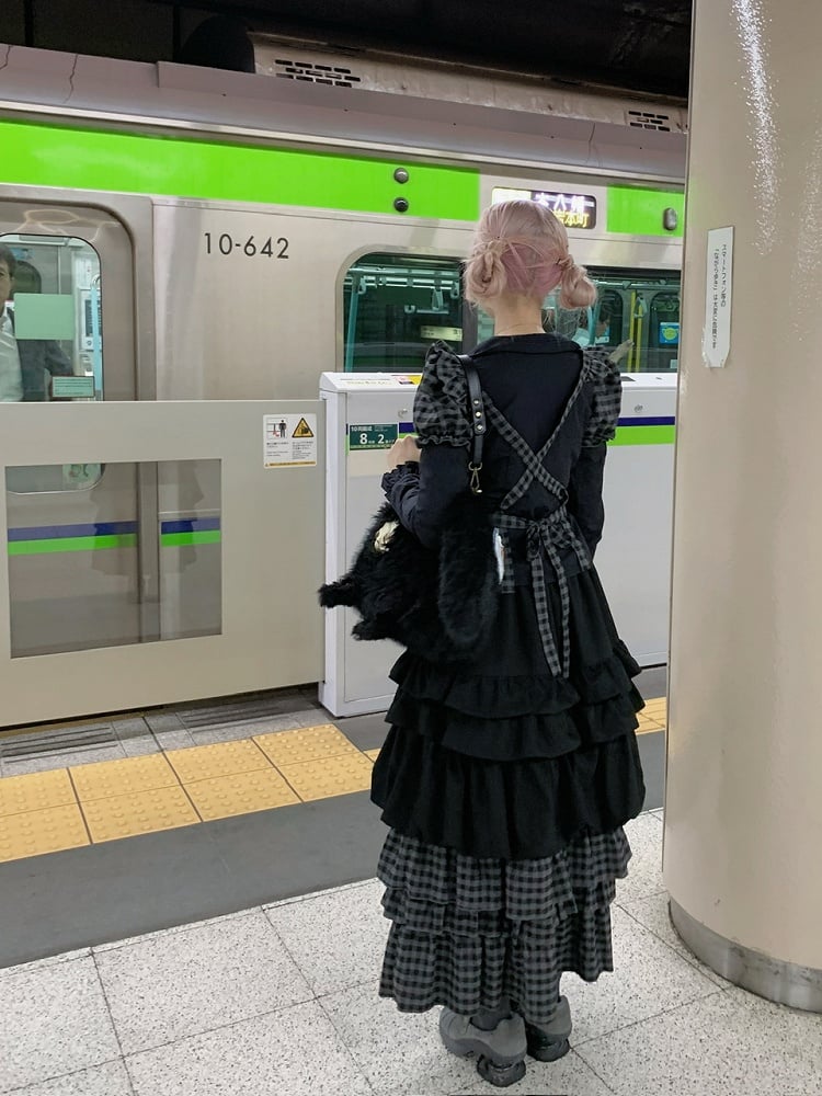 with Plaid Skirt Ankle Length Apron Tiered Trim Ruffle