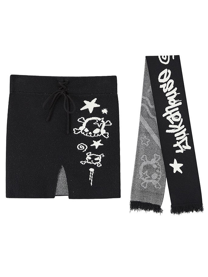with Star Edgy Matching Punk Print Slit Scarf Skull Top + Black Front Strapless
