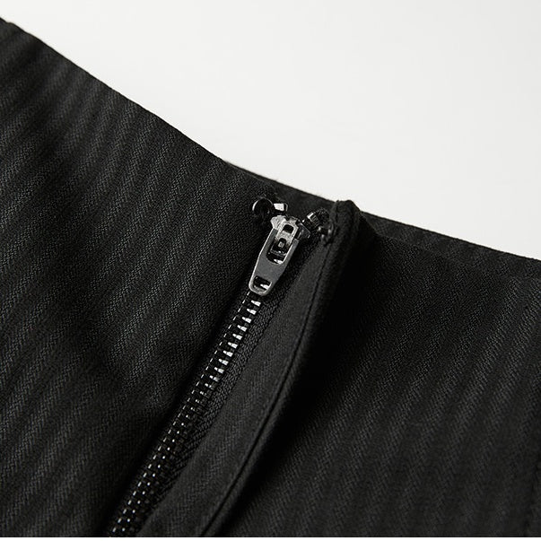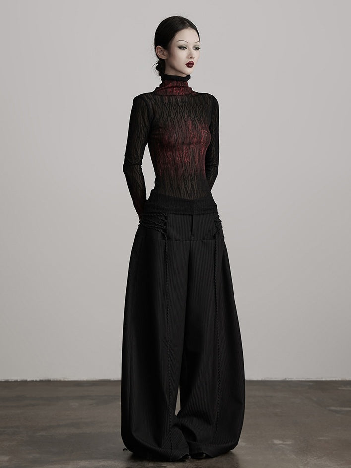 with Tie Curved Deco Pants Wide-Leg Goth Urban Black