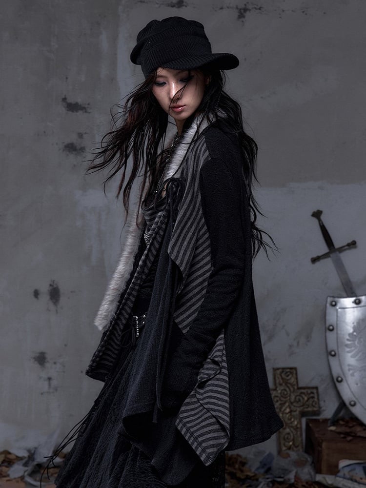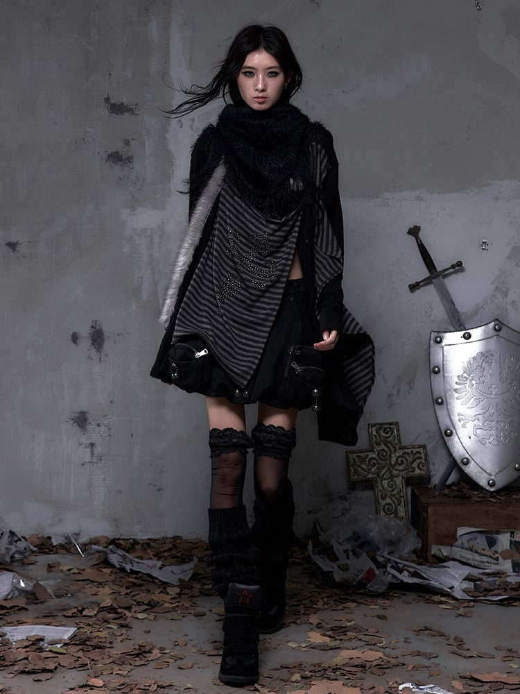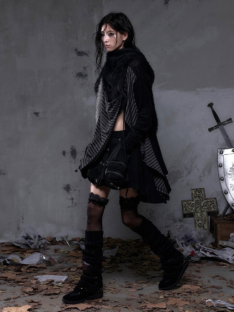 Gray 45cm Leg Warm Striped Knit Black Warmers