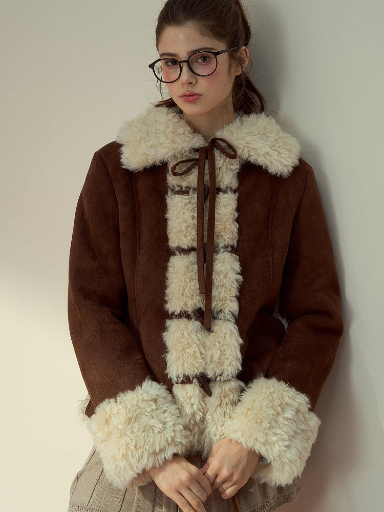 with Vintage Brown Toggle Collar Button Jacket Fur