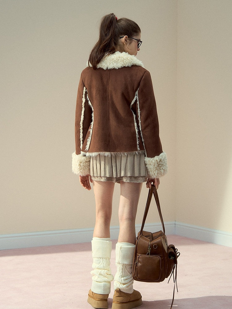 Brown Vintage Fur Collar Jacket with Toggle Button