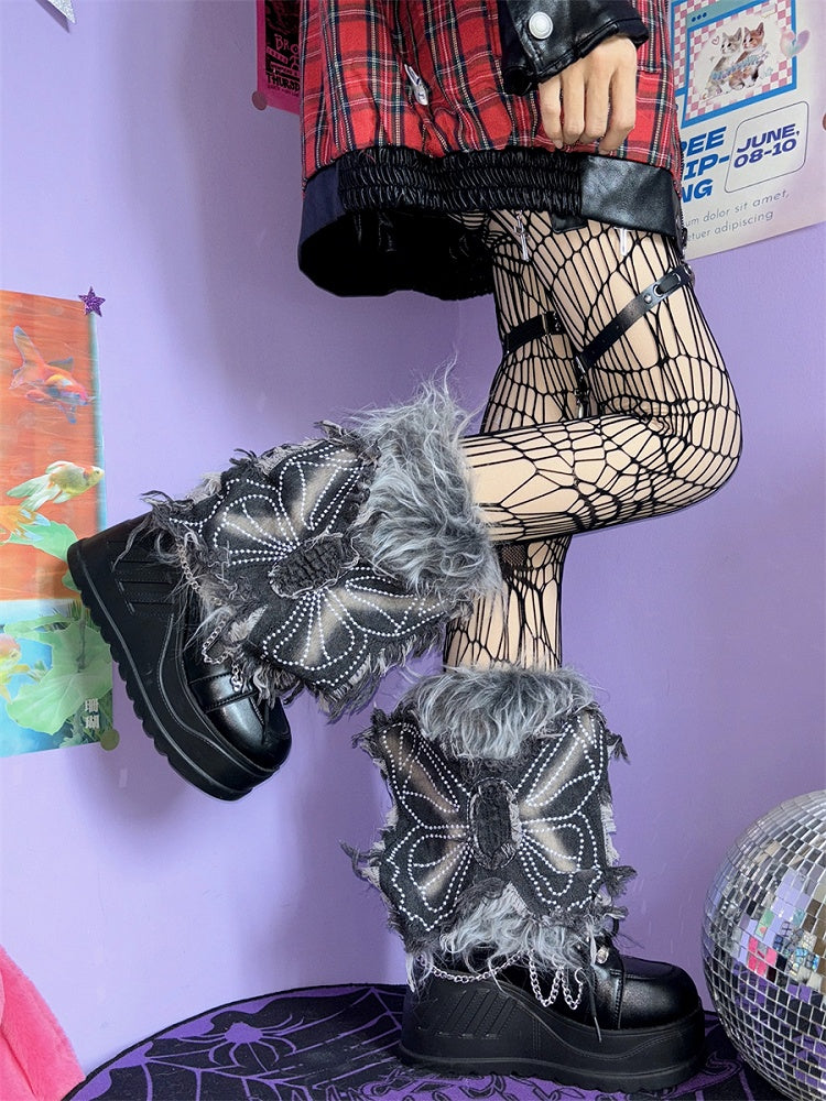 Y2K Butterfly Applique 25CM Shaggy Leg Warmers