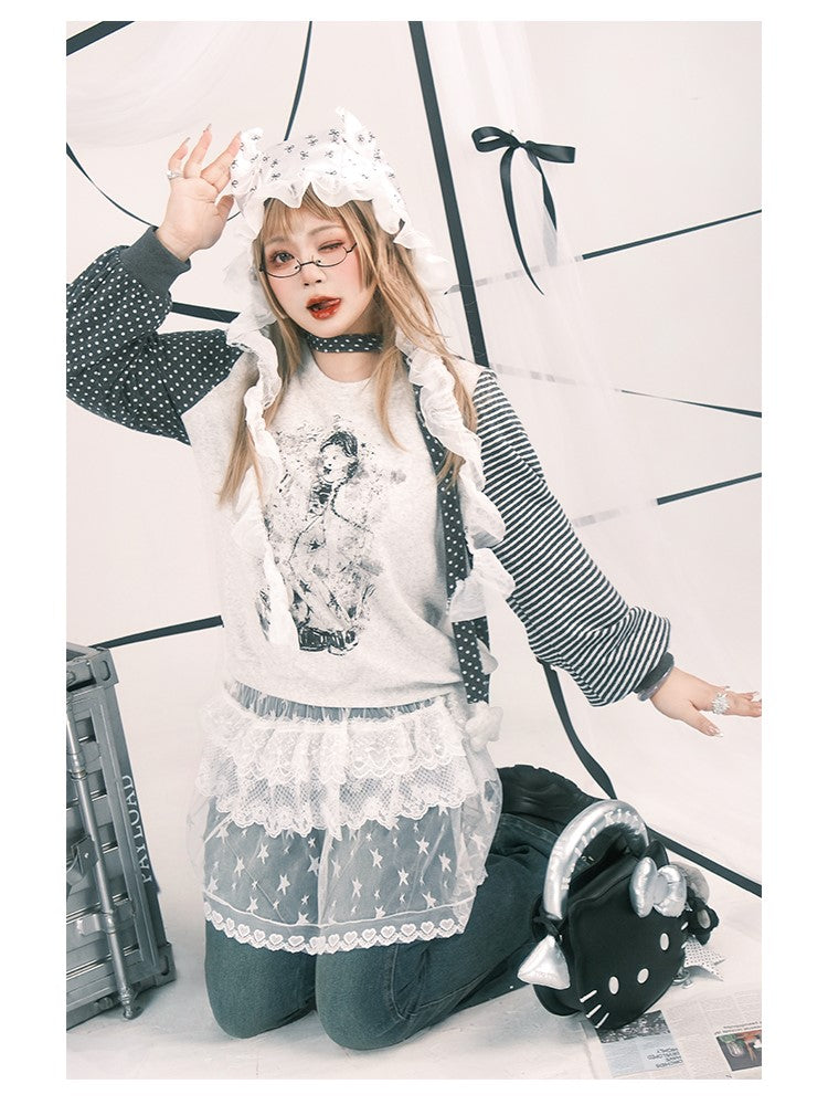 Y2K Size Embroidery Plus Floral White Overskirt Star with Sheer
