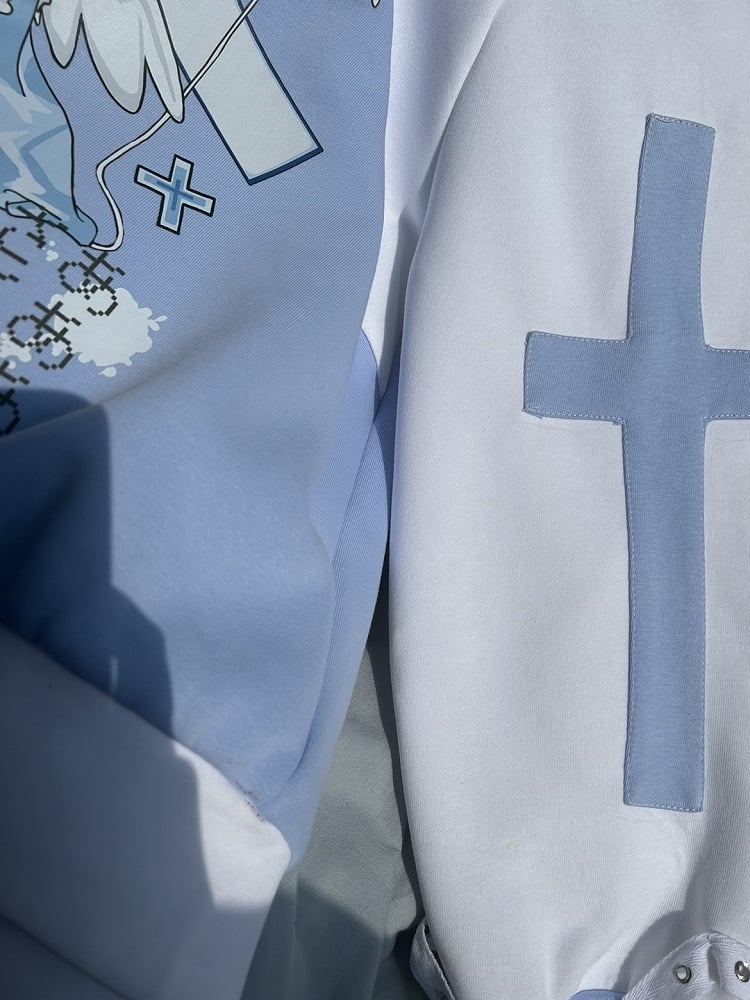 Light Blue Tenshi Kawaii Bunny Ear Hooded Jacket with Yami Kawaii Anime Print