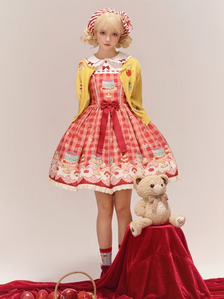 Pink and White Old School Lolita Fashion Dress Bowknot Detais Lolita JSK Set