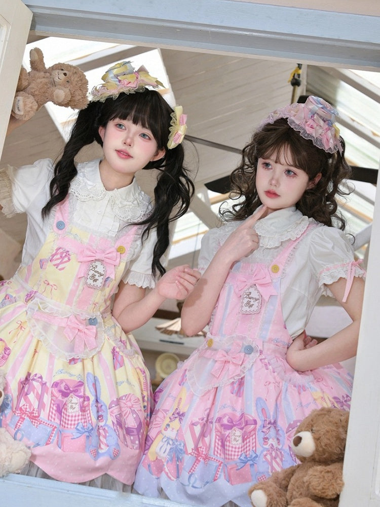 Pink and White Old School Lolita Fashion Dress Bowknot Detais Lolita JSK Set