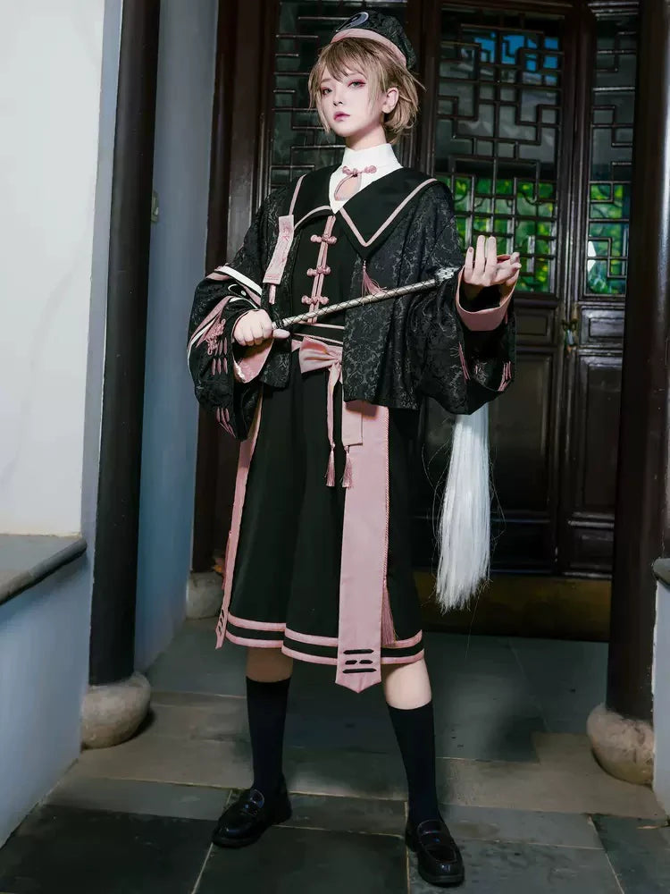 Black and White Old School Lolita Fashion Dress Bowknot Lolita JSK Set