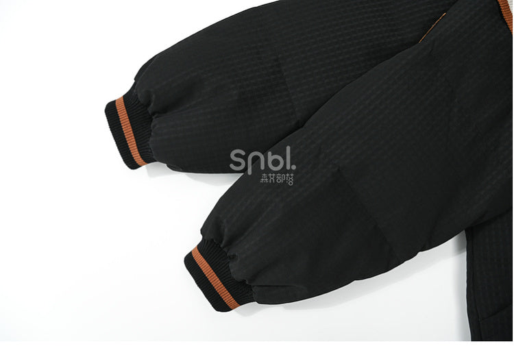 This Zootopia Nick applique black down jacket with detachable sleeves is the perfect combination of functionality and style. Its lightweight design and detachable sleeves make it versatile for any weather, while the cute applique adds a playful touch. Stay warm and adorable with this jacket.