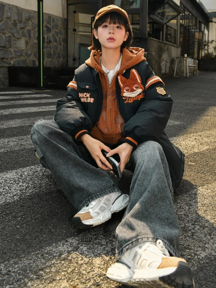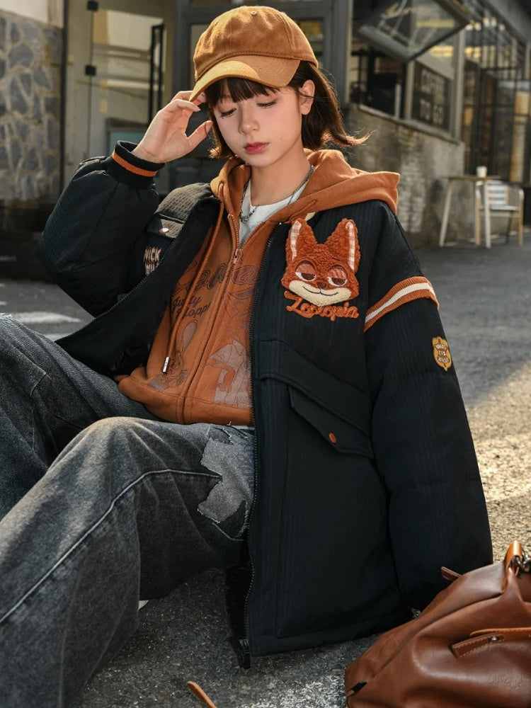 Zootopia Nick Applique Black Down Jacket Detachable Sleeves
