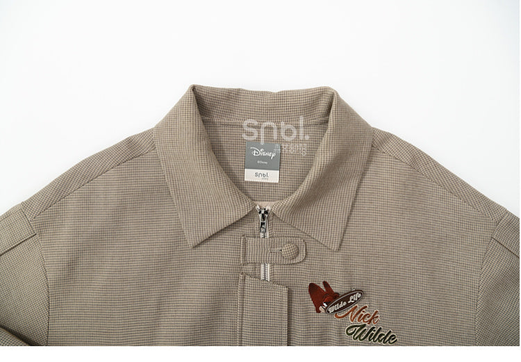 Zootopia Nick Khaki Polo Collar Plaid Jacket